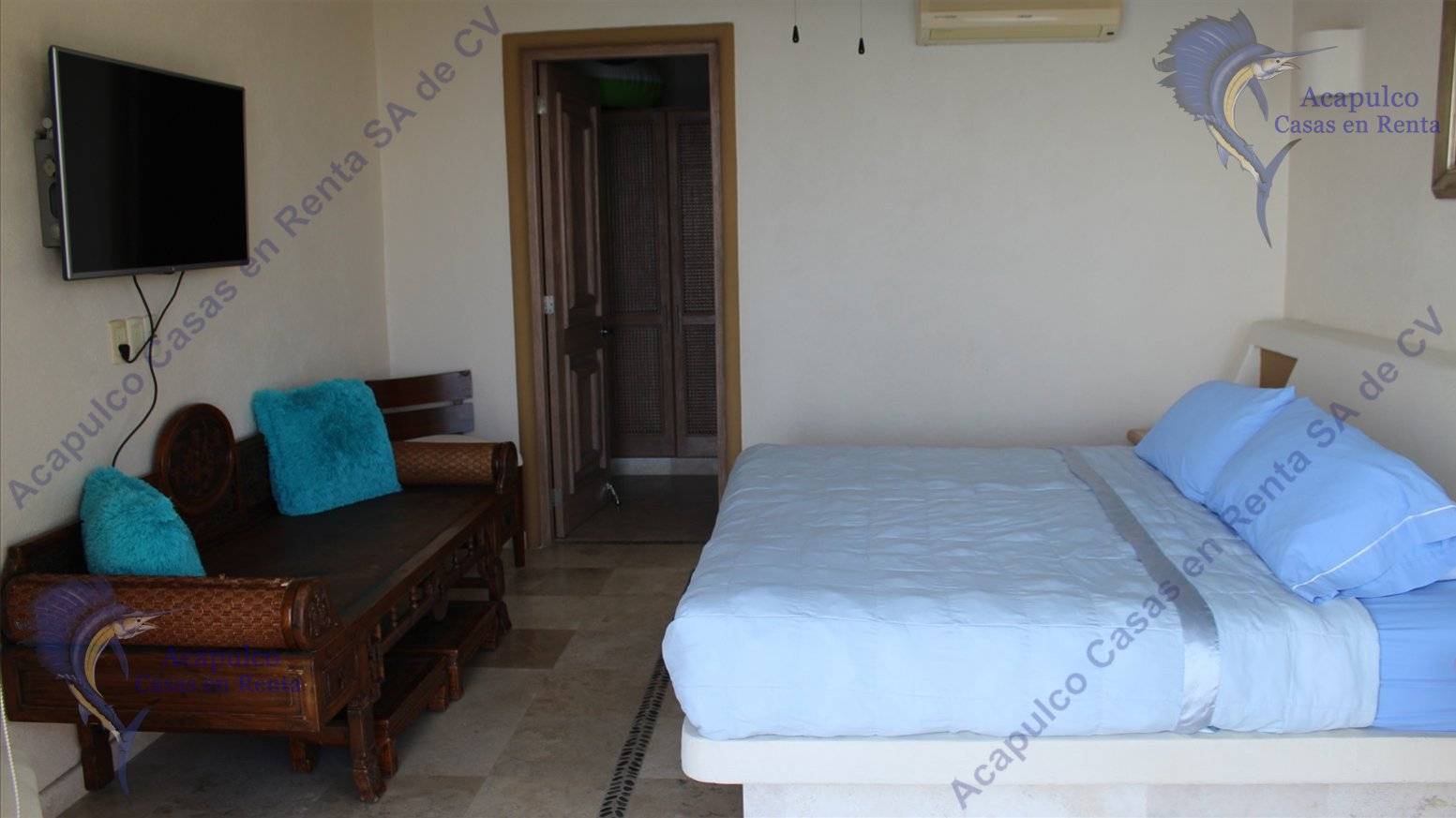 5.- Recamara con una King, TV con sky, baño completo, vestidor, aire acondicionado y vista espectacular.