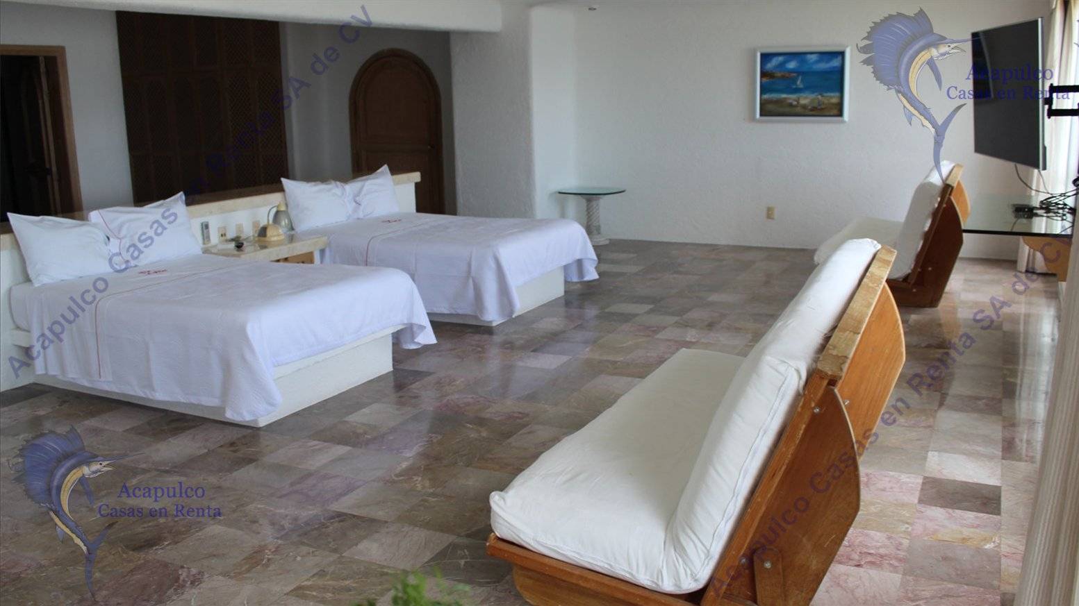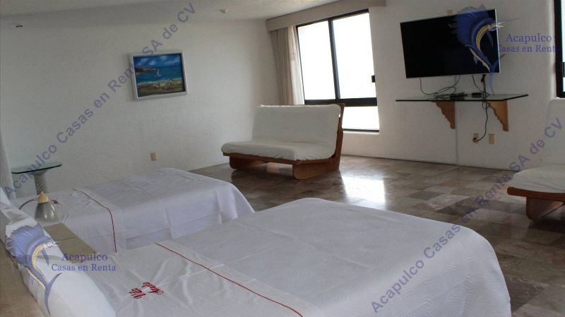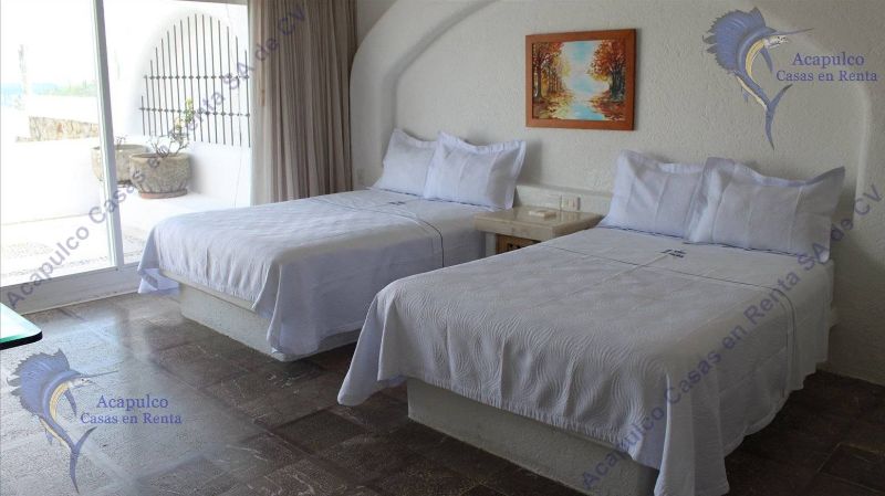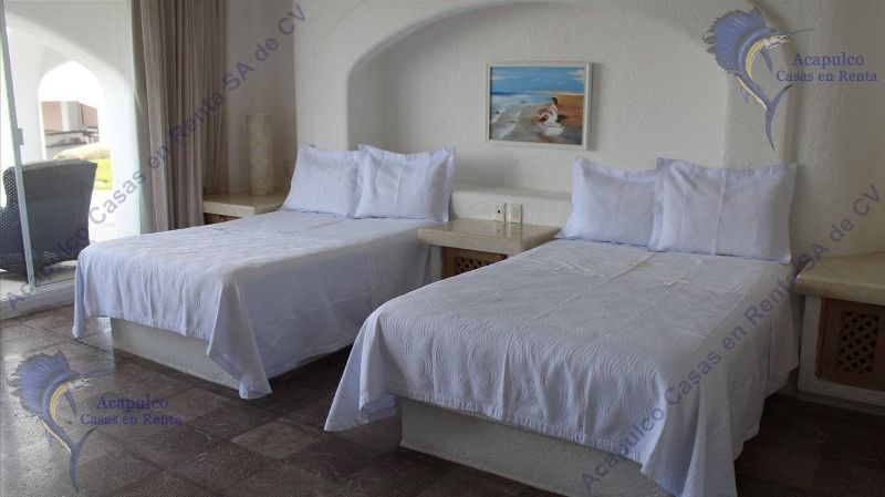 1 Recámara cuenta con 2 matrimoniales TV LCD, SKY, internet, con baño completo y vestidores muy grandes con vista de igual manera a todo Acapulco.