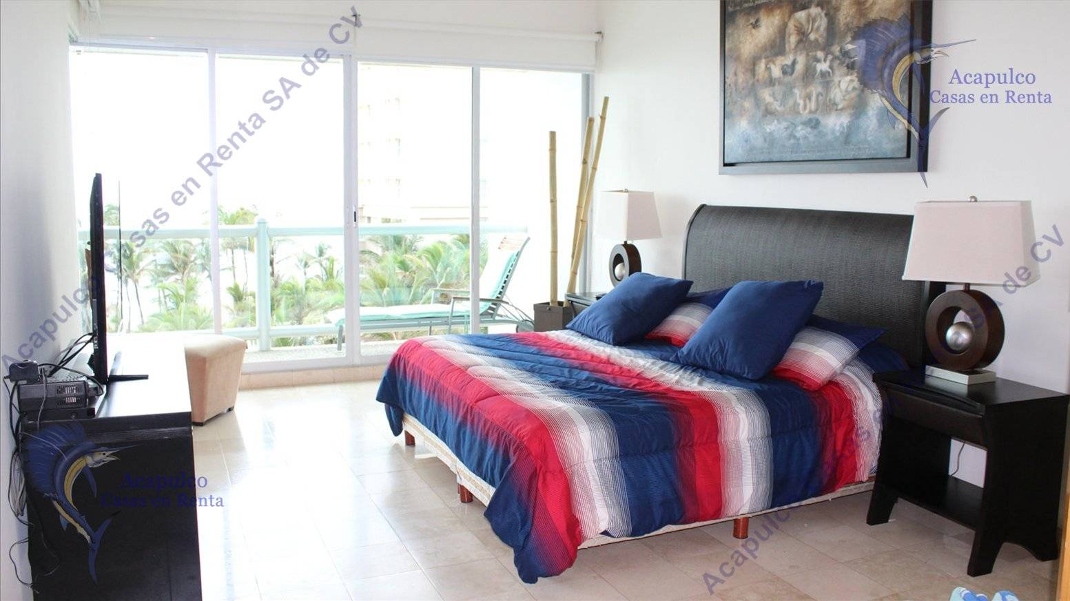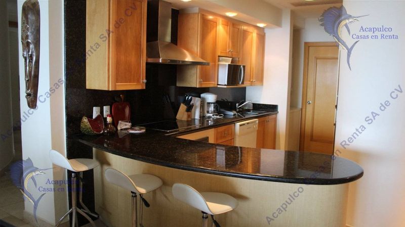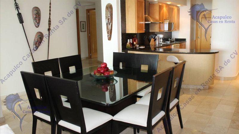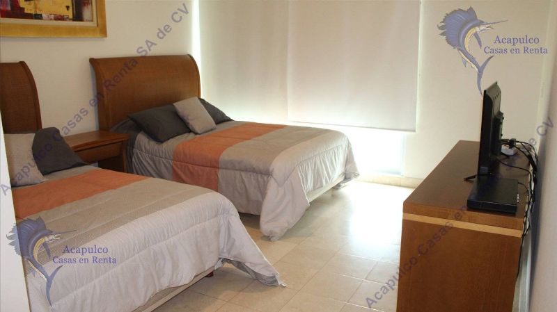 y pascua, por día o por semana. Lujoso departamento que se encuentra frente el mar con una espectacular vista. En la zona diamante de Acapulco a 2 minutos del centro comercial la isla Cuenta con servicio de Internet en el Lobby del edificio. 3 recámaras, la principal con vista al mar; un cuarto de servicio con una litera de 2 camas individuales y baño completo.
