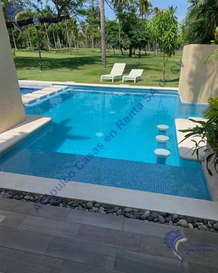 Villa en conjunto Acapulco Princess, Recién Remodelada, con vista muy agradable al campo de golf; Alberca Privada, comedor y terraza asoleadero, muebles de exterior a disposición. 4 recámaras, 4 baños, Sala amplia con pantalla y sintonía de SKY.